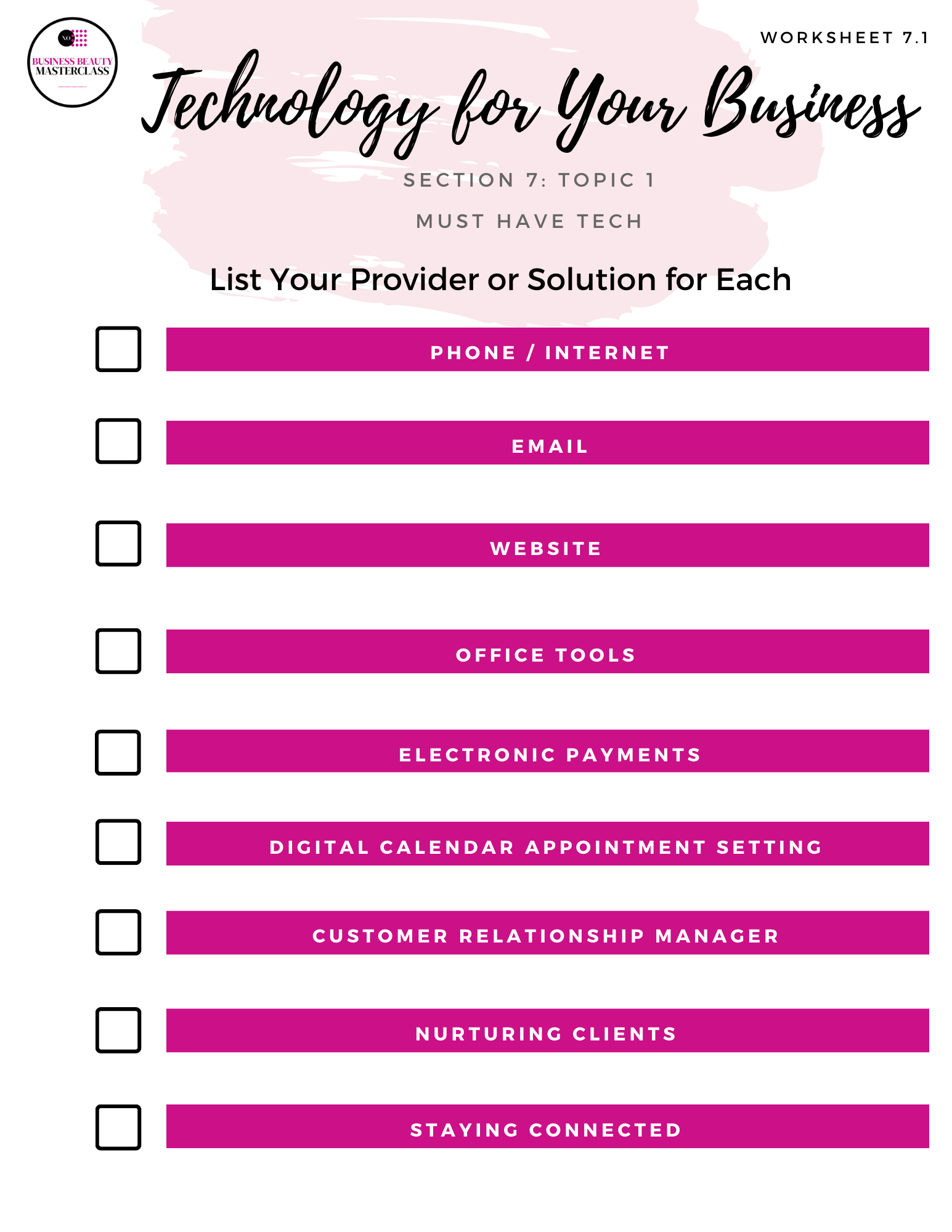 Start with the 30-minute Class video, then complete the Worksheets BEFORE starting the Next Section.